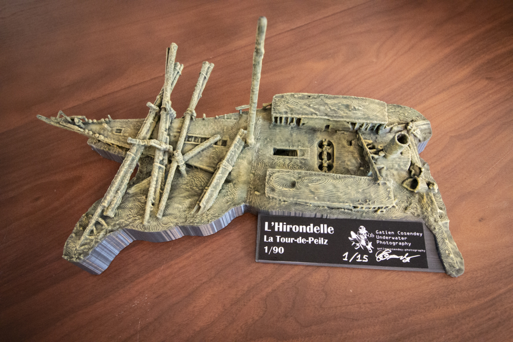 Maquette de l’Hirondelle à l’échelle 1:90. Série limitée à 15 exemplaires numérotés et signés : 850.-